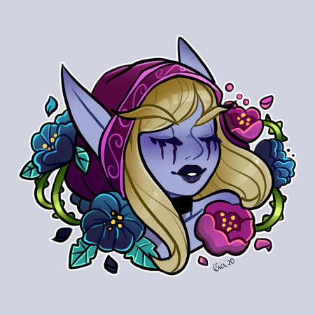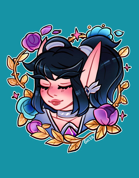 Small portrait of your character, surrounded by flowers and with a simple coloring style